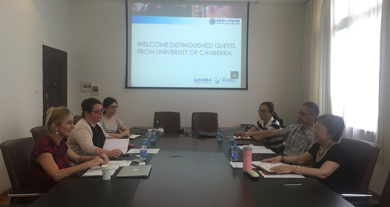 Headed by Mr, Luby Simson and Ms Katie Ley, Deputy Dean and Education Manager of Faculty of Business and Government and Law, the delegation of the University of Canberra, Australia, visited ECUST on June 15, 2016. Ms. Huang Lujin and Mr. Meng Le, Deputy Dean and Dean Assistant of School of Business,ECUST welcomed the Australian guests. They conducted in-depth exchanges and discussions on the project management and development, curriculum and faculty, admissions and alumni of the 2015-- 2016 Sino- Australia Cooperative MBA Program.